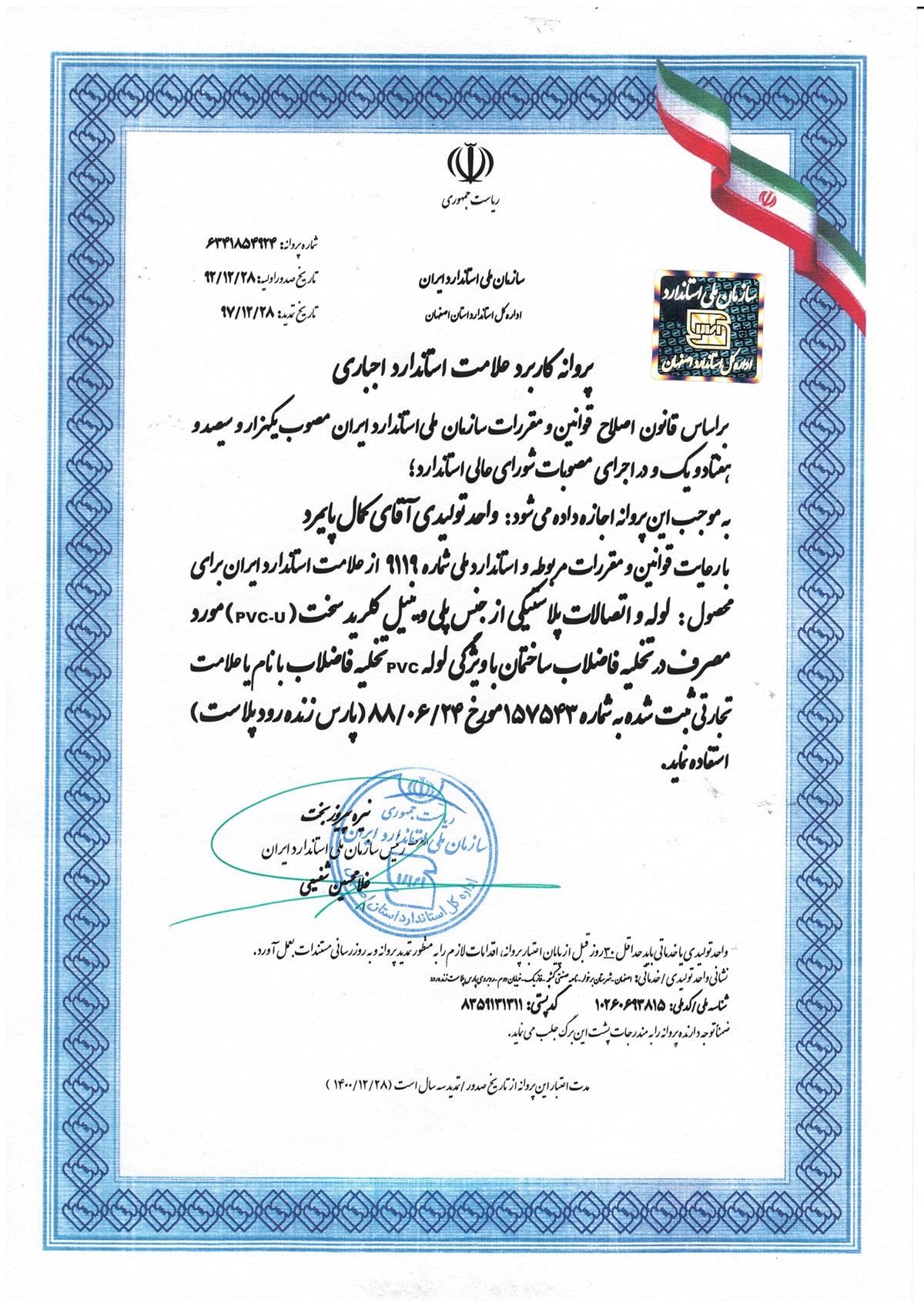 PVC pipes, the second category of products manufactured by Pars Zenderud Plast, are of the highest quality and are quite competitive.